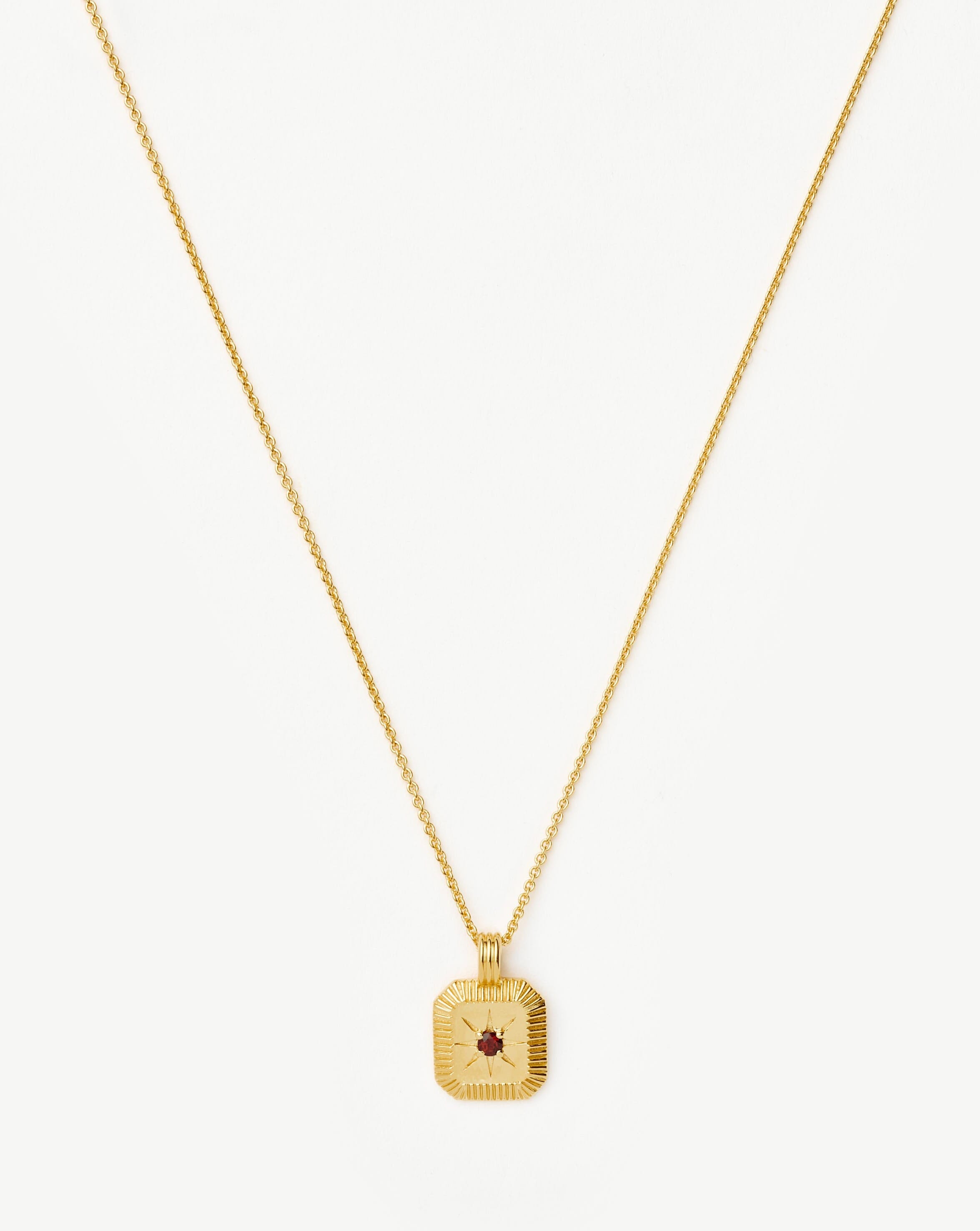 Bring your birth month a whole new meaning with a personalized gemstone necklace. The ridged pendant, held on a short chain necklace, holds a natural garnet stone, symbolizing love, and is embellished with a central star motif. The perfect gift for anyone born in January.