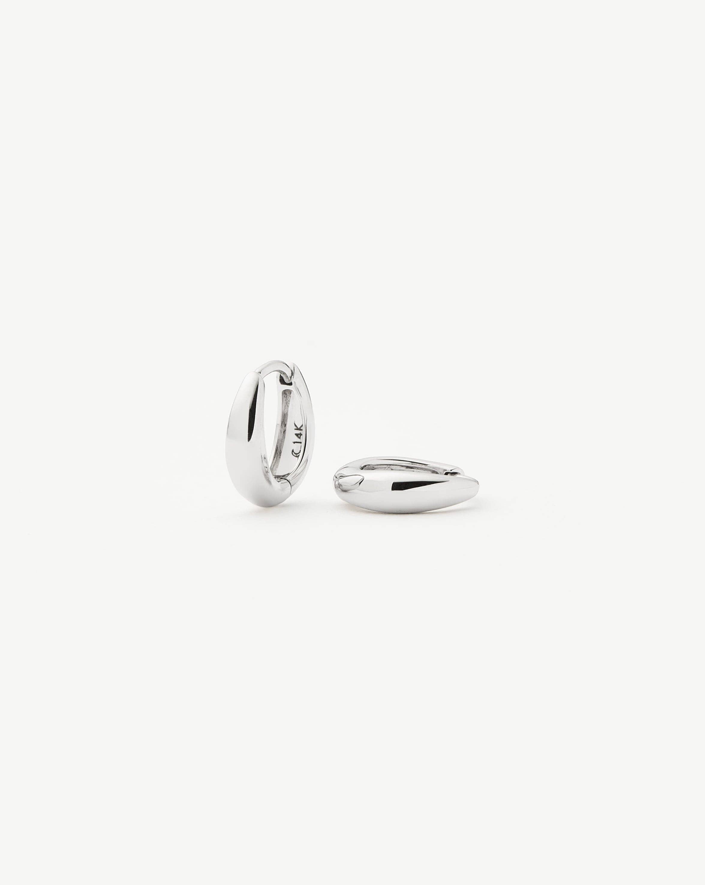 These 14k solid gold huggies hug the ear lobe with a minimalist domed design. Wear solo or style with studs and mini hoops for an instant ear stack.