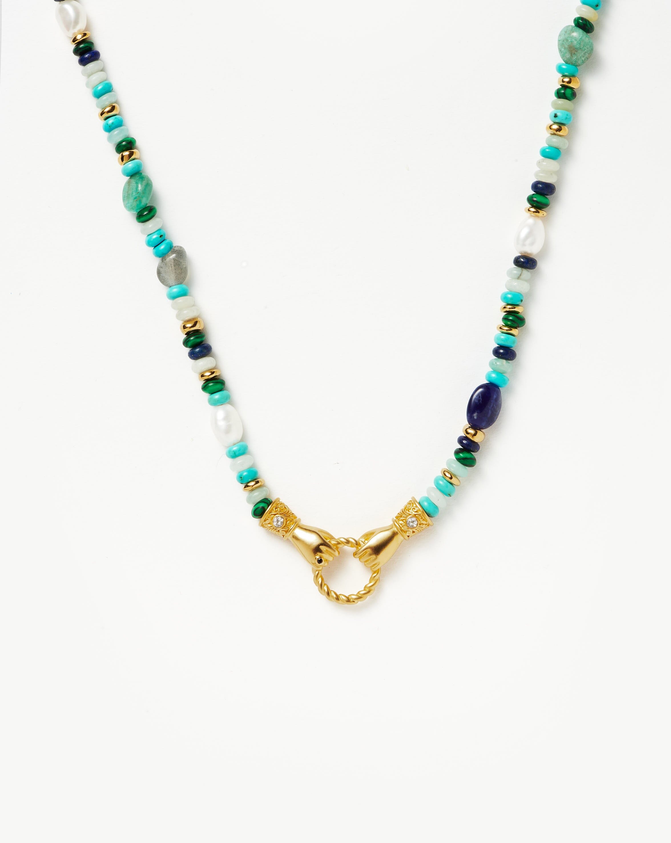 Harris Reed x Missoma’s sell out ‘In Good Hands’ design is reimagined with new colorful gems. The multi-beaded necklace features a kaleidoscope of mood-boosting semi-precious stones, offset with organic-inspired gold beads.
