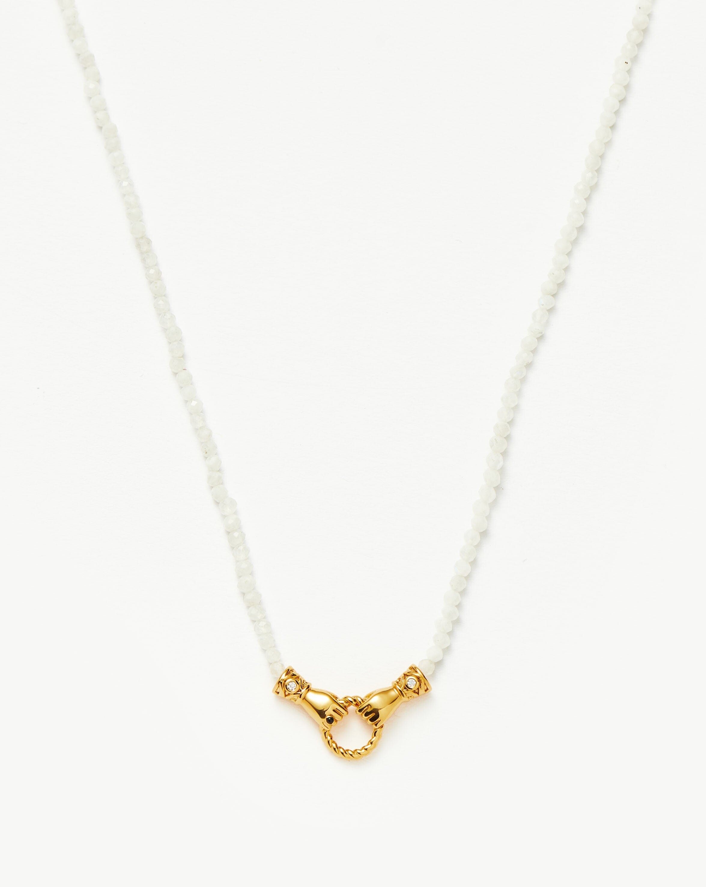Inspired by our Harris Reed x Missoma sell out ‘In Good Hands’ design, now in a new mini size. The beaded necklace features rainbow moonstone – a gemstone known for bringing new beginnings – faceted to catch the light.