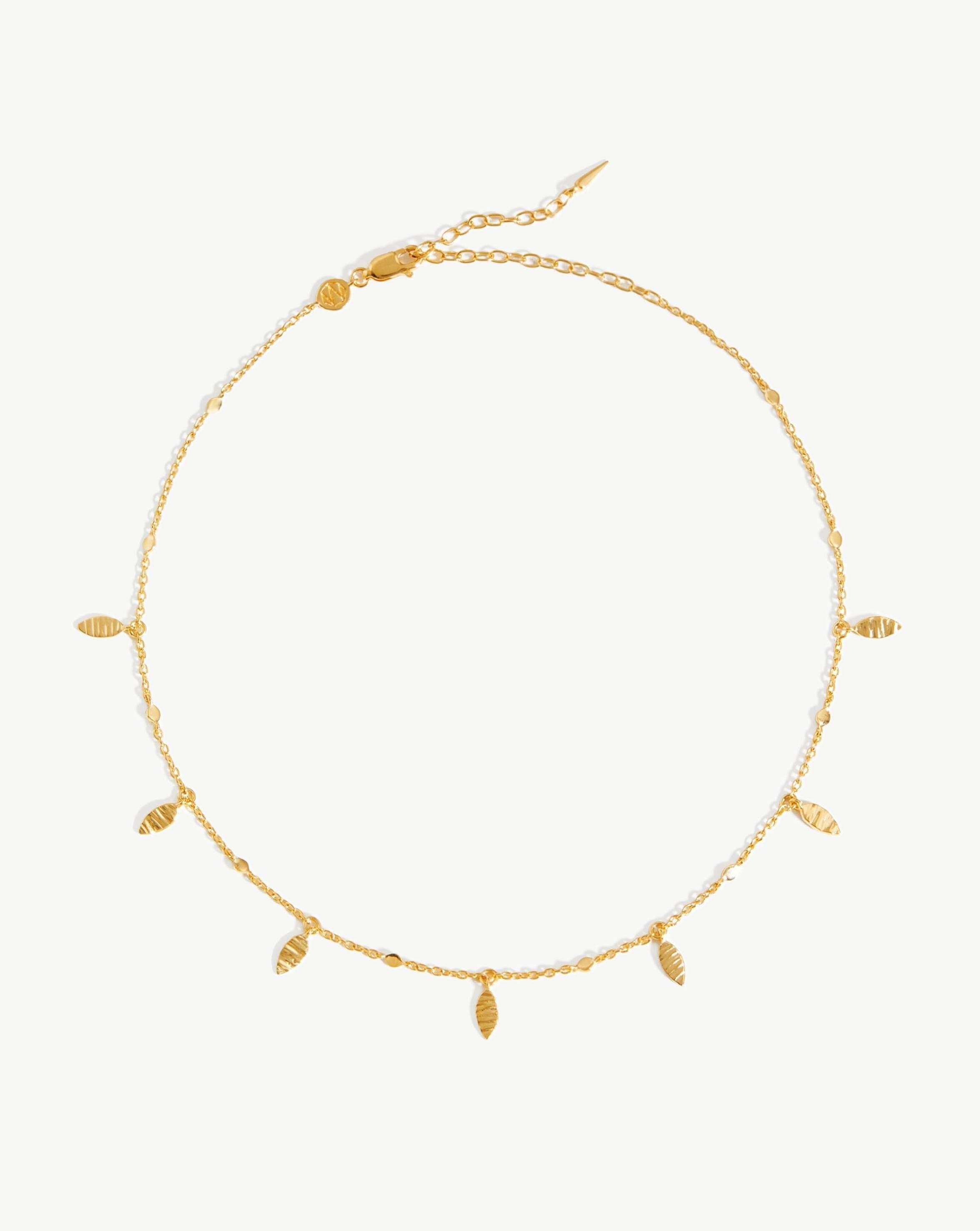 Ace your base. This distinctive best selling choker is a standout addition to your layers, featuring leaf charms with a hammered finish. Let it shine solo or team with a longer pendant necklace for added length.