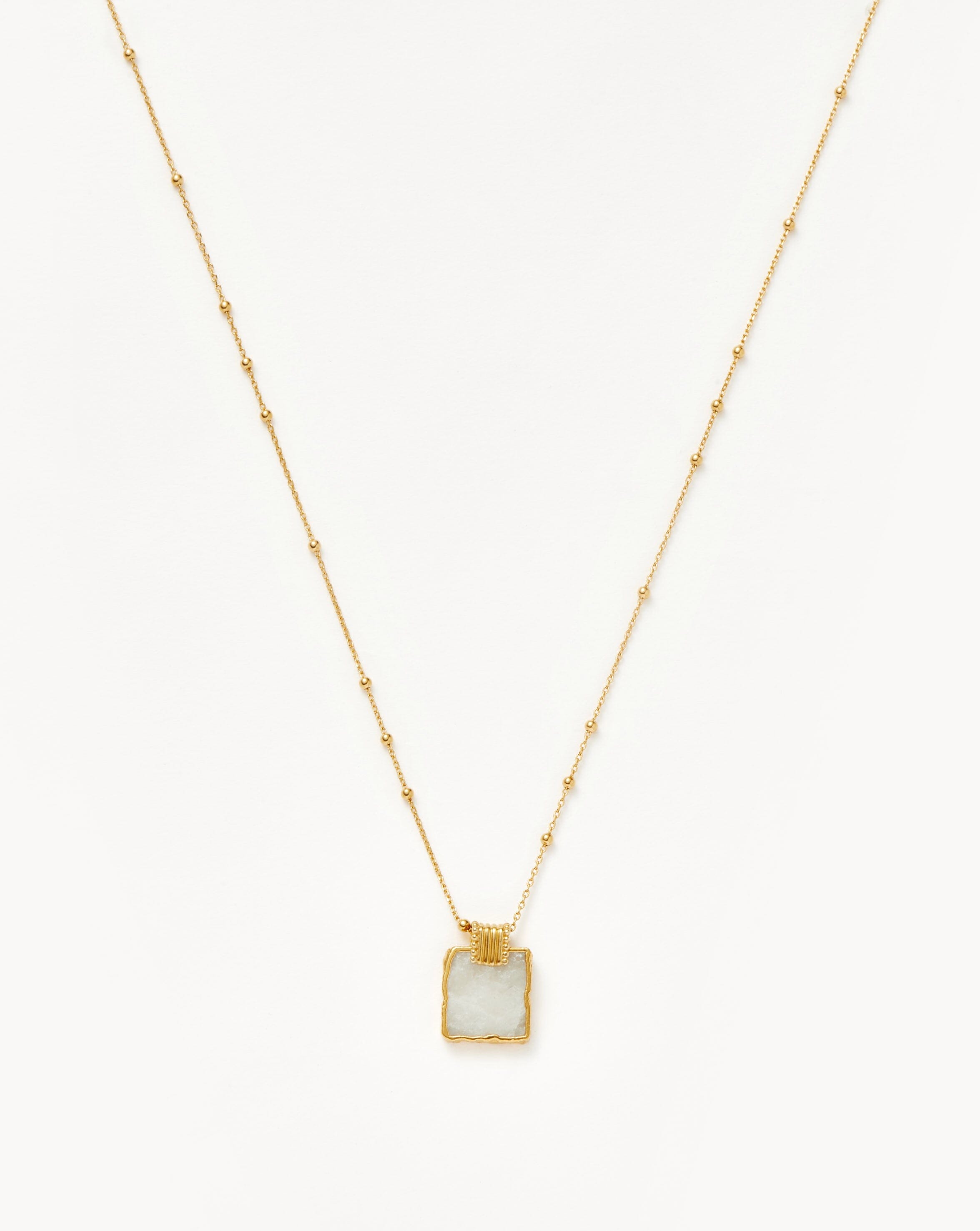 A best selling design that adds shine to your layers. A delicate bobble chain is anchored by an iridescent rainbow moonstone charm – known for new beginnings. Layer with a base choker and chunky chain for everyday styling.