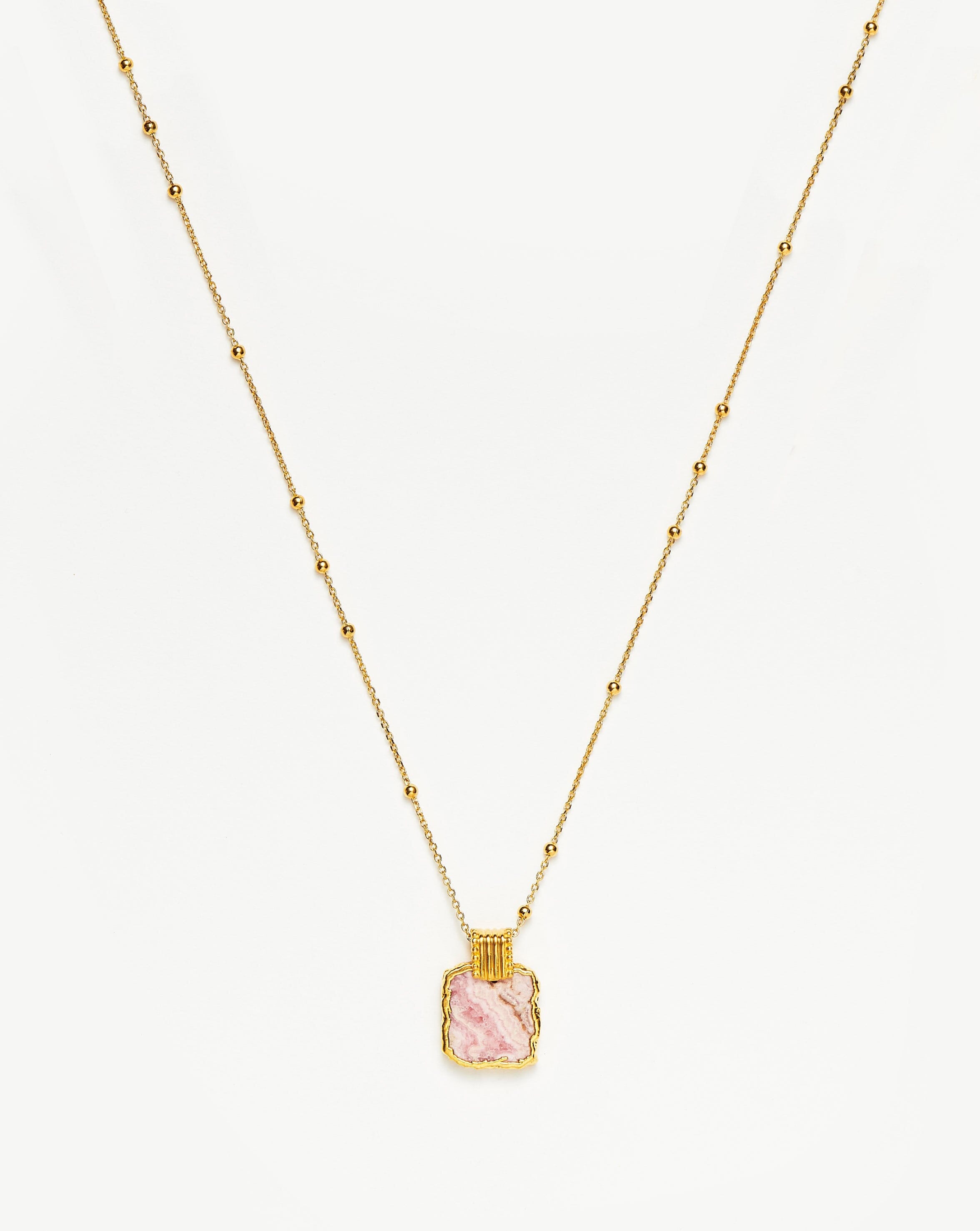 A best selling design that adds color to your layers. A delicate bobble chain is anchored by a vibrant rhodochrosite gemstone – a symbol of love. Layer with a base choker and chunky chain for everyday styling.