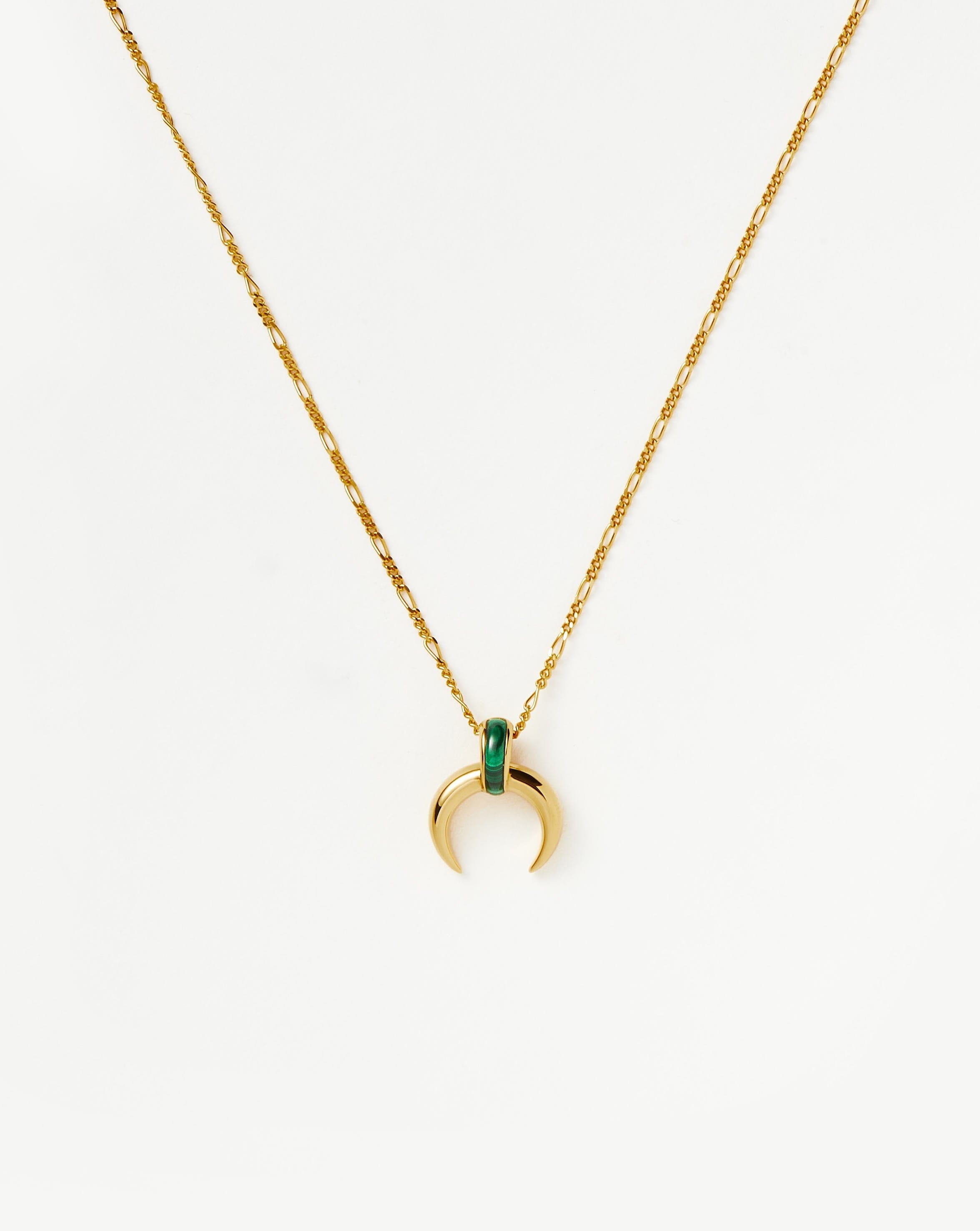 A classic, reimagined. Inspired by our original Lucy Williams x Missoma trendsetting design, the small horn pendant features a hand-cut malachite gemstone inlay — the transformation stone — paired with a mini figaro chain. Style with a classic choker for a layered look.