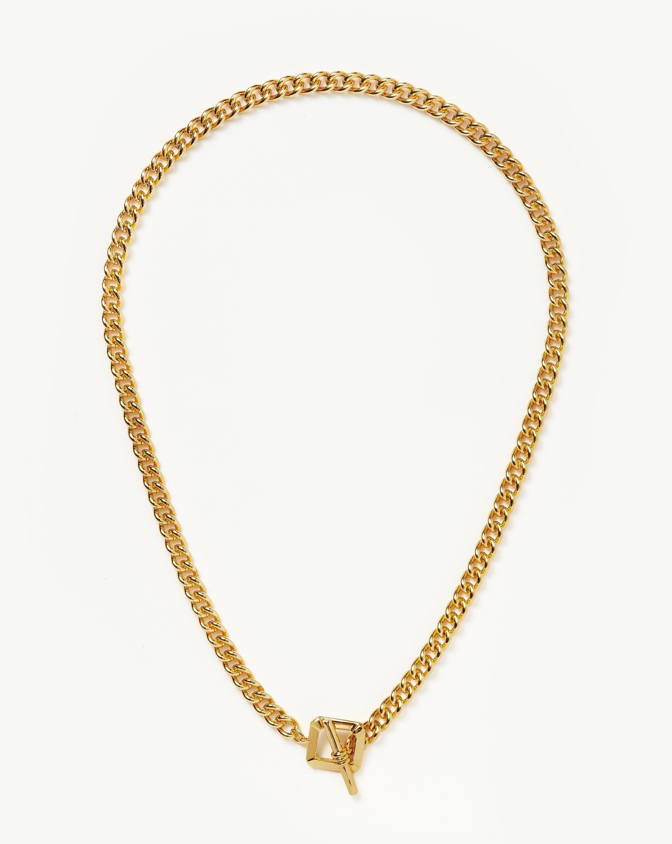 A best selling piece from the Lucy Williams x Missoma collection. Inspired by one of Lucy's mother's antique necklaces, the chain features a distinctive square t-bar clasp – a nostalgic nod to the 80s. A statement piece worn solo or layered with a choker for contrast.