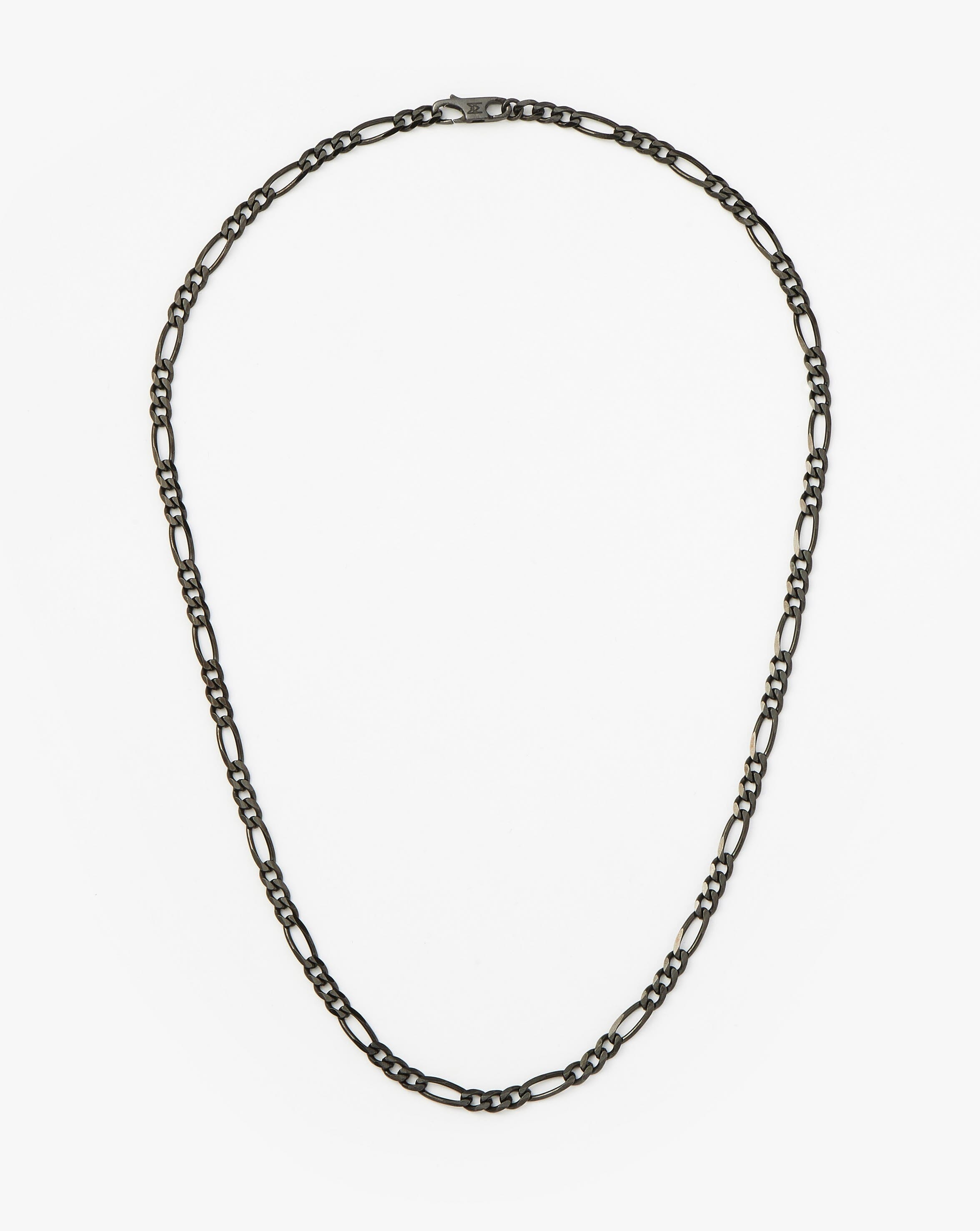 Handcrafted for him. Our classic filia chain is upgraded with larger figaro links and our first-ever black ruthenium plating. The necklace is finished with a new chunky clasp – designed to match the width of our statement chains for a seamless finish.