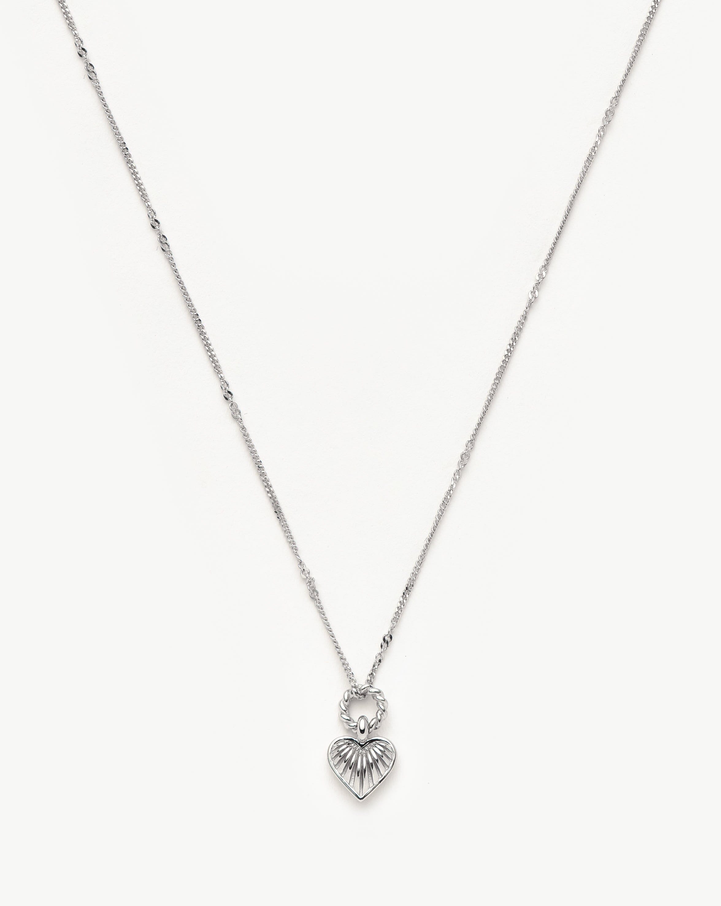 Inspired by our iconic Ridge Heart Charm Necklace – spotted in the Barbie movie – now in a brand-new mini size. Paired with a delicate chain, the mini silver puffed heart pendant features signature ridge detailing and a twisted rope jump ring. Layer with longer necklaces or a delicate choker.