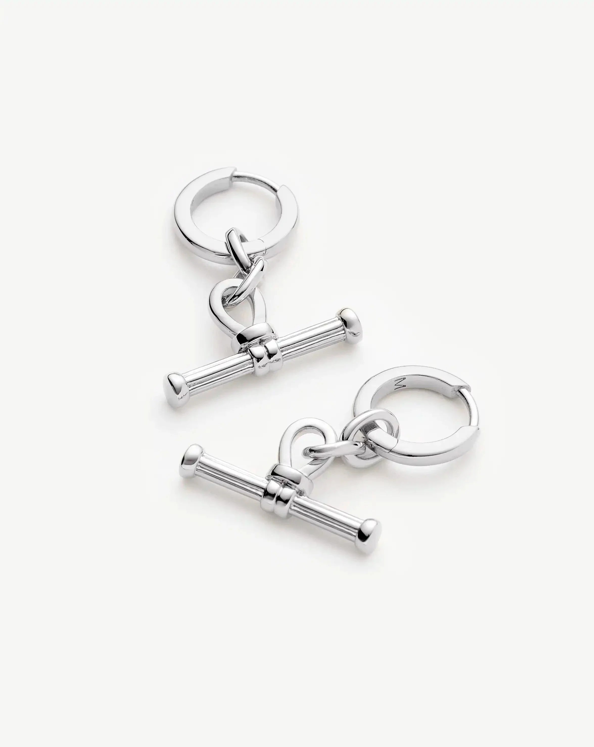 These huggie earrings feature distinctive t-bar charms with our signature ridge detailing. Remove the charms to wear the huggies solo, or style up with mini hoops and studs for an instant ear stack.