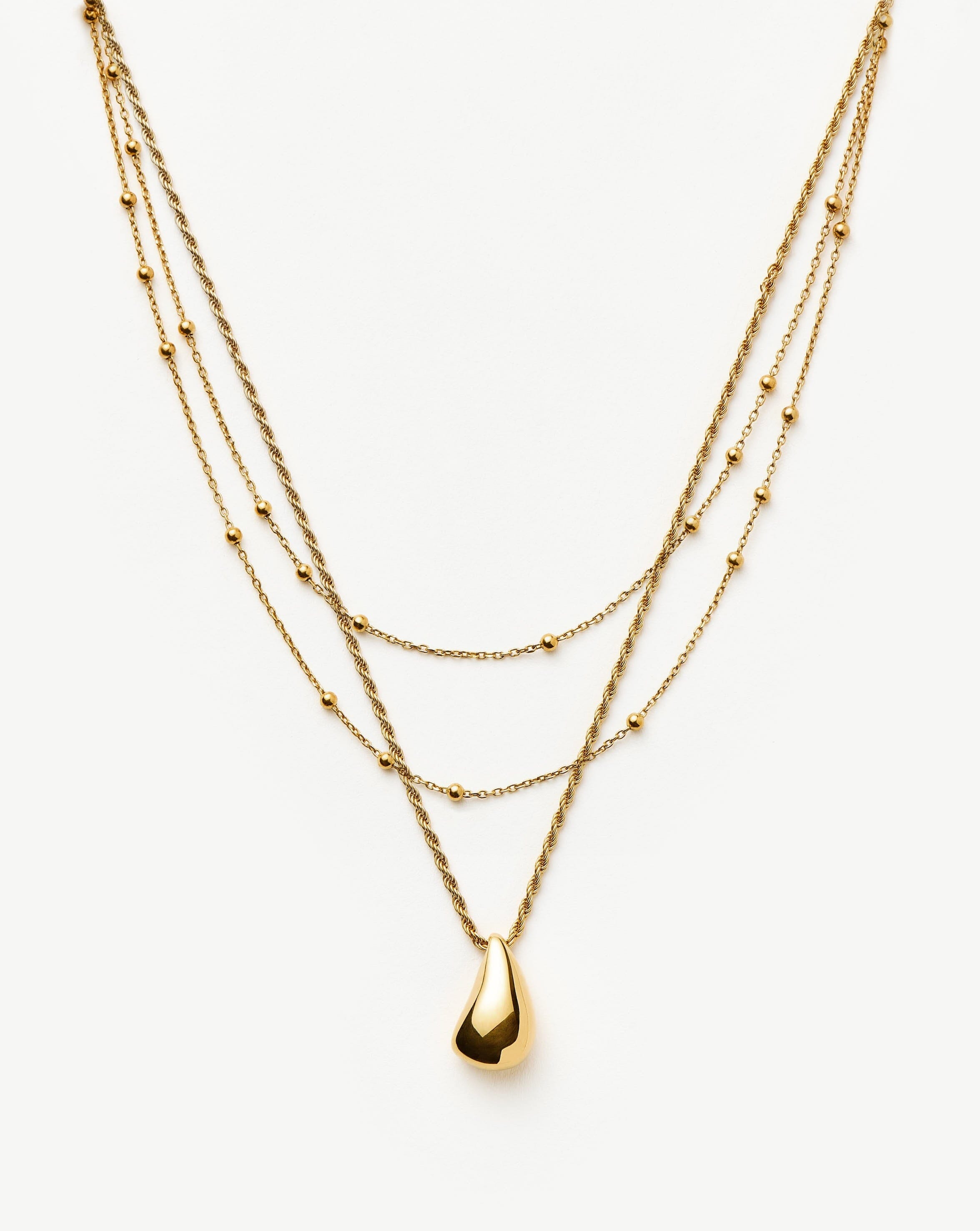 Upgrade your layers with this sculptural necklace set. Teamed together, the Savi Sculptural Droplet Pendant Necklace and Double Chain Necklace create a delicate duo you'll never want to take off. Save more when buying them together.