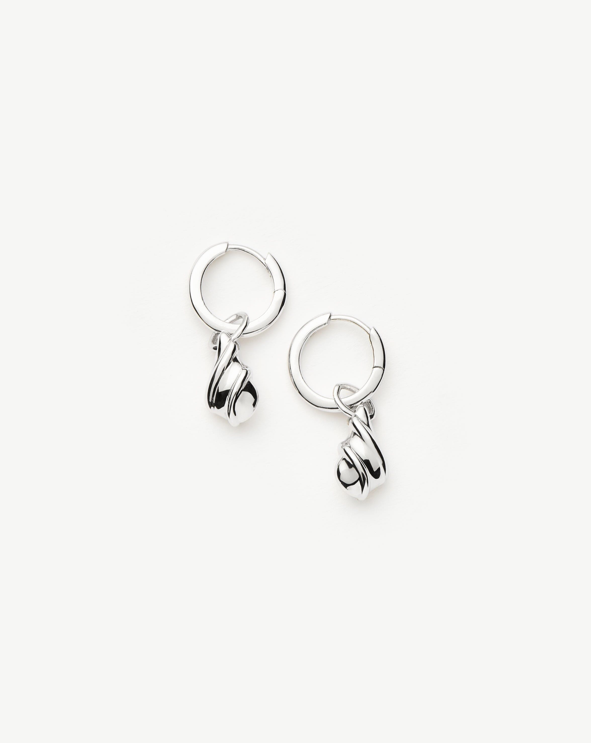 These small hoops feature our signature Savi 'S' shaped droplet charms with a matte and high shine finish. Style solo or stack with your favorite studs and mini hoops. Remove the charms to wear the hoops solo.