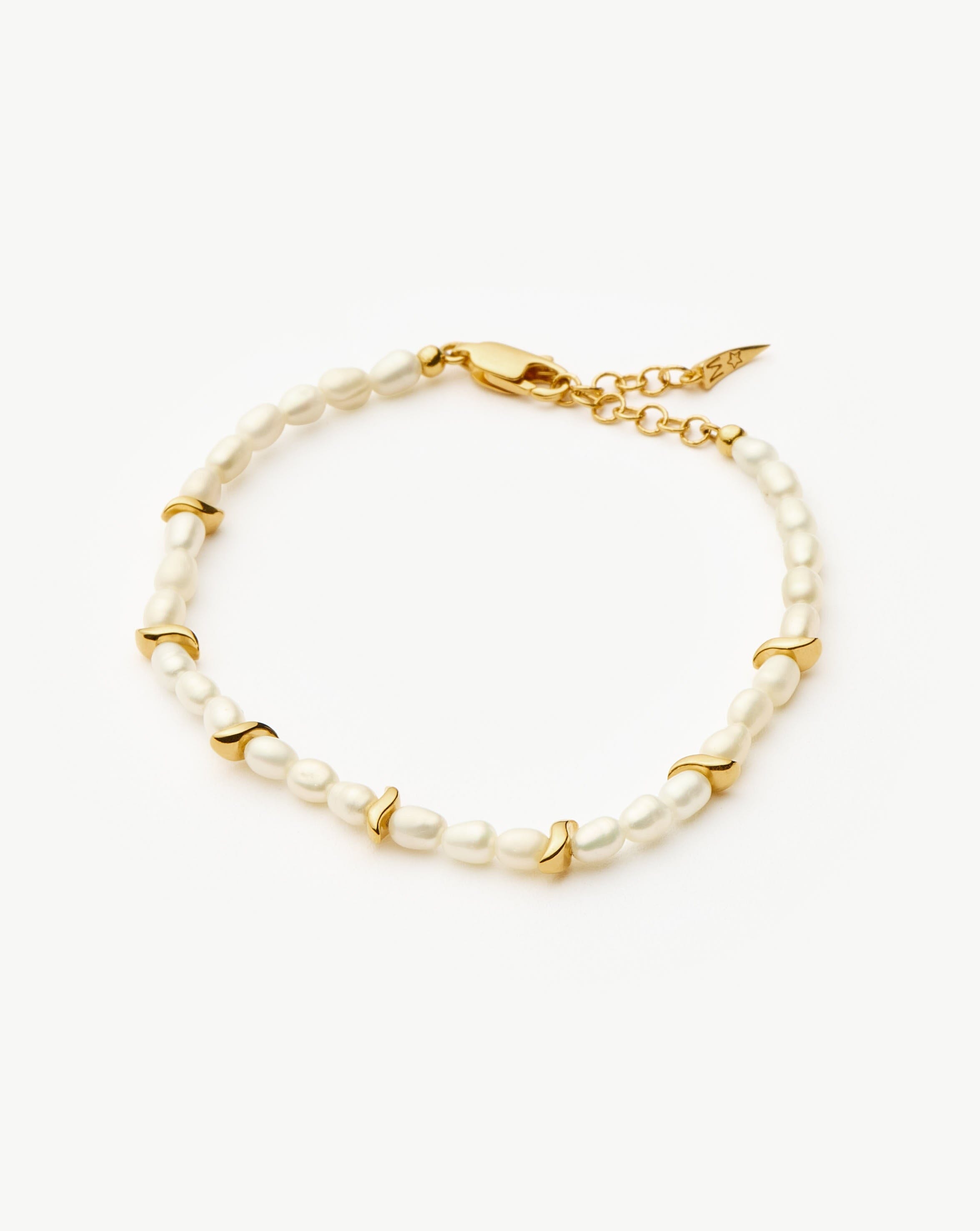 A limited-edition bracelet for the Year of the Snake. Seed Pearls are offset with gold beads to form this beaded bracelet, inspired by the symbol 'S' for snake and for Savi. Wear solo, layer up with the Savi Seed Pearl Gemstone Bracelet.