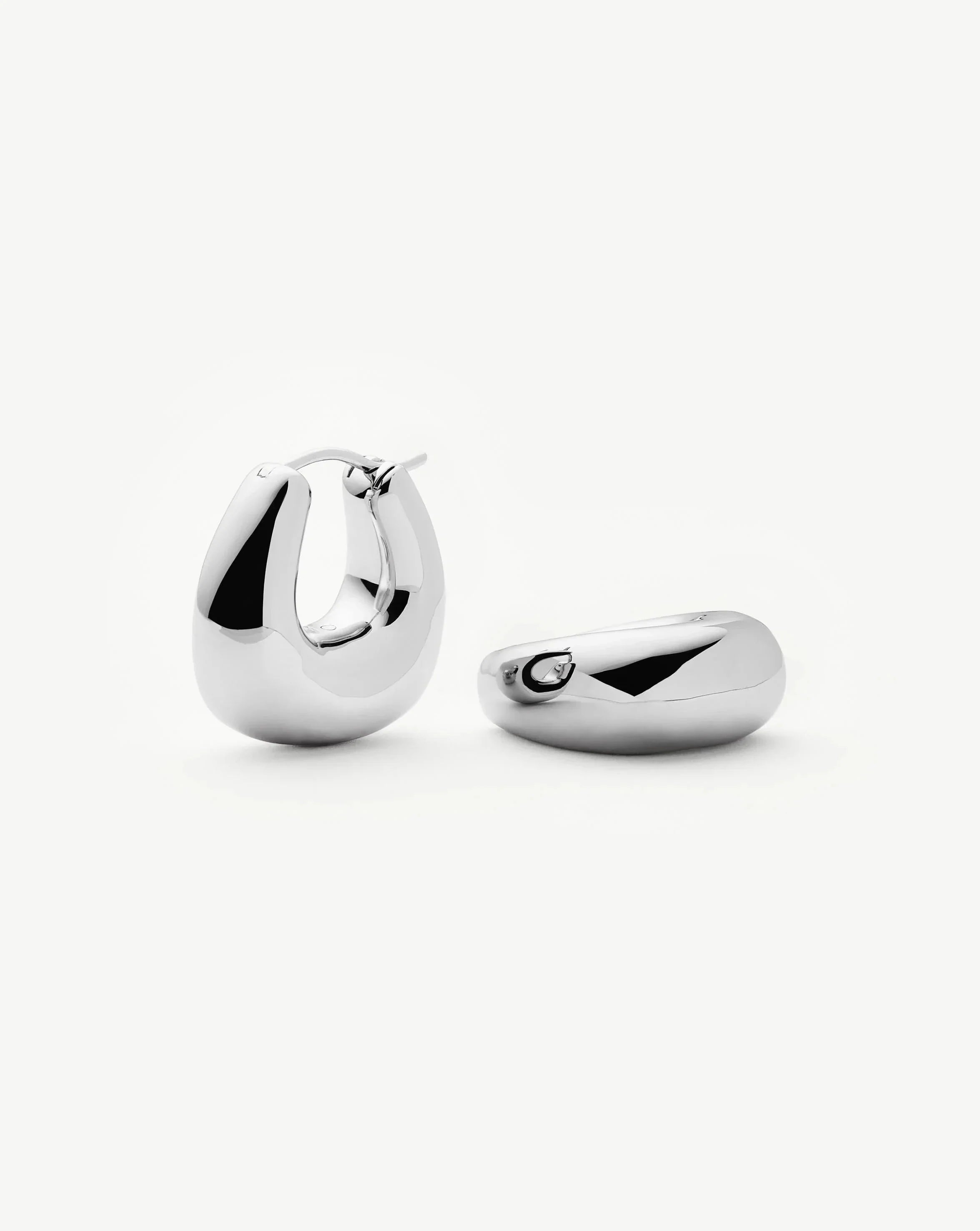 Inspired by sculptural shapes, these everyday chunky hoops feature a molten puffy design. Pair with studs for an instant ear stack.