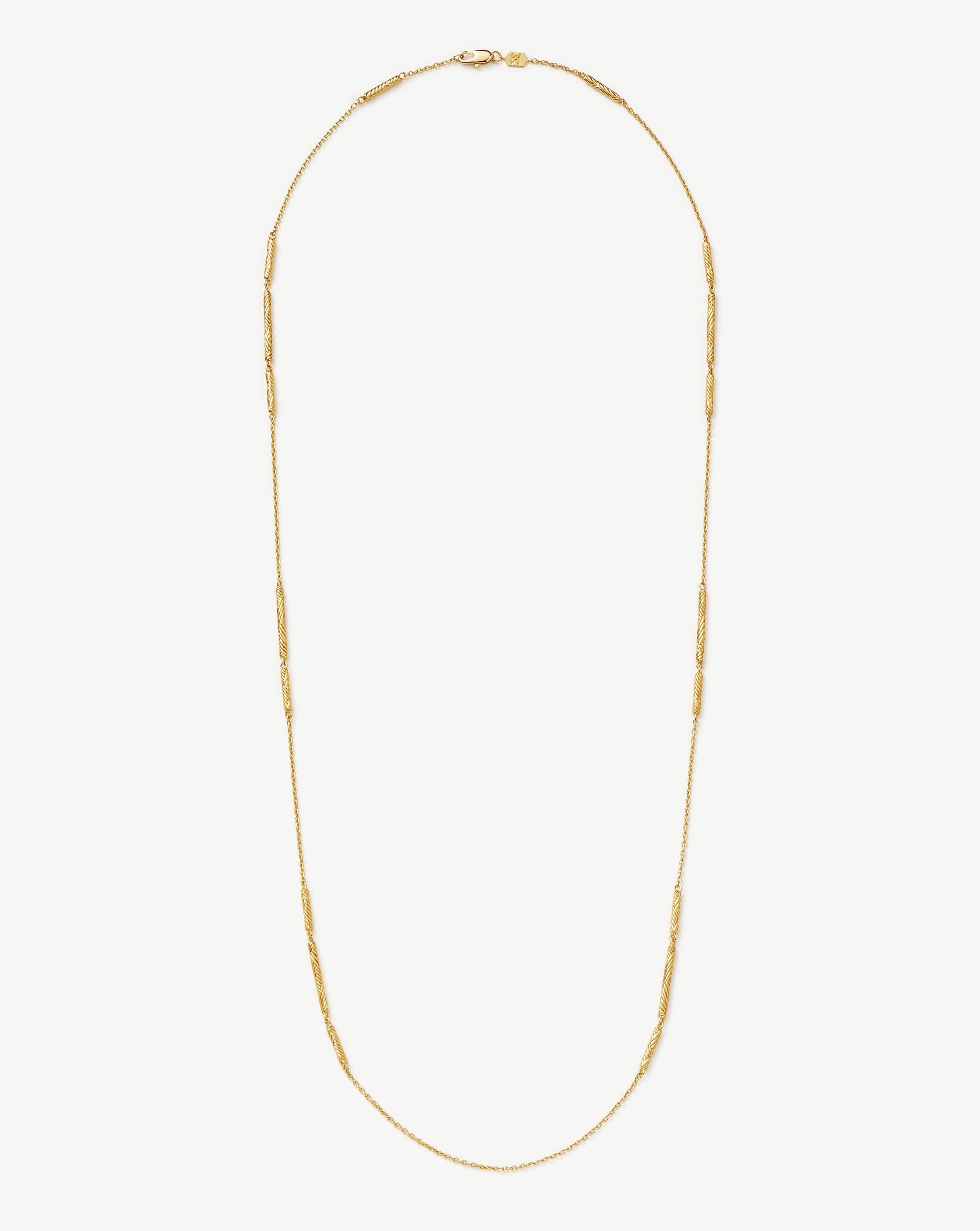 This everyday chain features bespoke tube links with a textured design, inspired by the ripples of the ocean. Style multiple ways as an extra long necklace, or wrapped around as a choker or instant layered look.